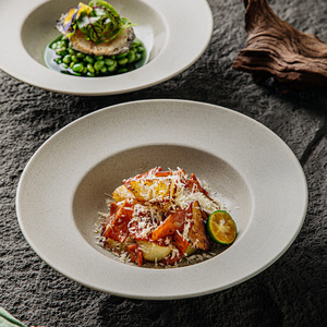 创意复古陶瓷草帽盘粗陶意面盘西餐法式汤盘甜品盘菜盘深盘飞碟盘