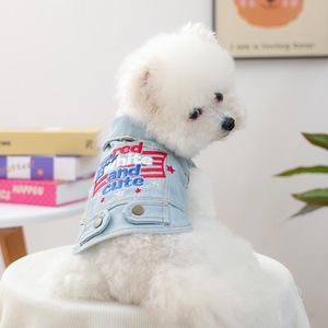 宠物圈新品宠物小狗猫咪衣服源头工厂直销帅气刺绣星条旗牛仔衣
