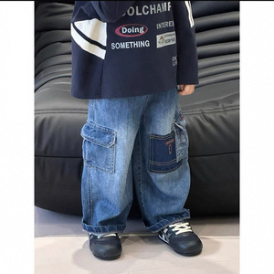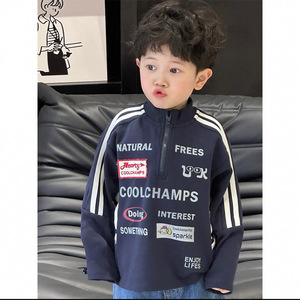 男童两件套2025春秋新款韩版可爱舒适立领卫衣休闲蓝色工装裤套装