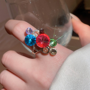 韩版椭圆锆石多层开口戒指精致时尚宫廷风食指戒设计感小众手饰女