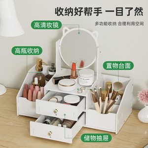 桌面化妆品收纳盒美妆收纳工具梳妆台带抽屉整理盒镂空雕刻置物架