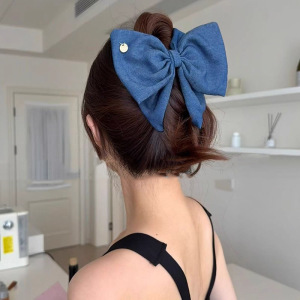牛仔三角抓夹女高级感2025新款可折叠蝴蝶结发夹后脑勺盘发鲨鱼夹