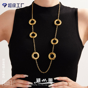 谜丽 不锈钢空心圆环长款双色毛衣链镀18k金简约百搭饰品跨境新款