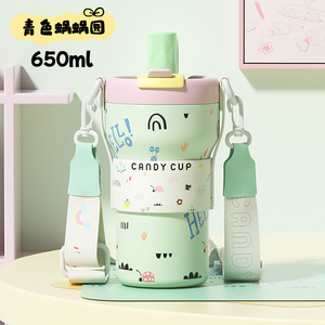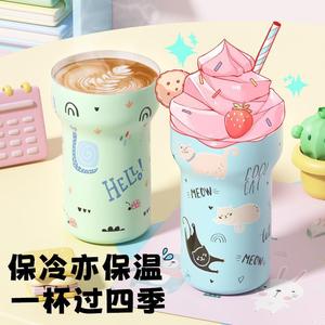 大容量双饮吸管保温杯316不锈钢陶瓷内胆冰霸杯可爱学生网红水杯