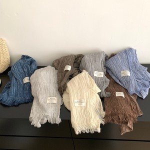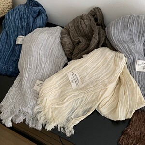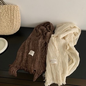 新款秋冬季保暖长款纯色褶皱棉麻围巾女披肩韩版百搭纱巾流苏围脖