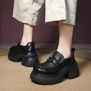 头层牛皮厚底增高发泡底乐福鞋女秋百搭一脚蹬英伦单鞋xiaow8609
