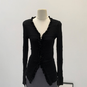设计感木耳边长袖针织开衫女装外套2025早秋季新款薄款单穿小上衣