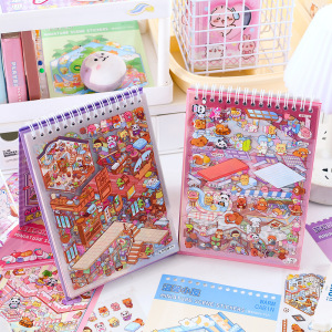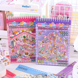 微缩场景合集本6.0萌宠3D立体小屋造景贴纸女孩儿童玩具diy手帐贴