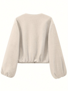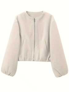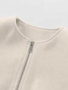 现货跨境女装2025秋冬欧美时尚圆领螺纹下摆仿呢料短款毛呢外套