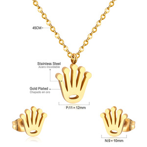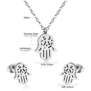 跨境热销18k金不锈钢耳钉项链珠宝首饰简约镂空手掌项链首饰套装