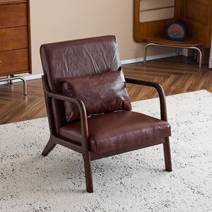 桔色PU皮胡桃色扶手(2椅+茶几)
