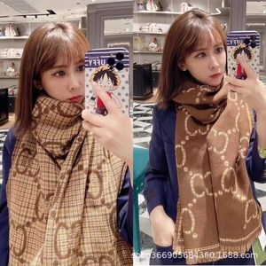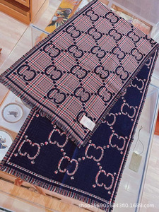 2025新款秋冬gg围巾女羊毛经典格子白棕双面字母披肩奶驼色围脖