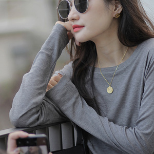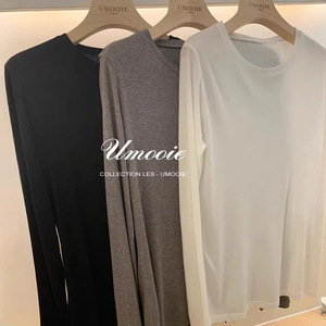 2025春季新款叠穿BI备莱赛尔丝三色长袖T恤女春秋内搭打底衫上衣
