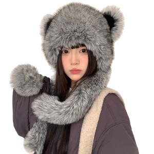 可爱小熊帽子女秋冬加厚保暖仿皮草帽子新款百搭毛绒帽显脸小帽子