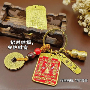 招财纳福聚财祈福钥匙扣 财库树五帝钱葫芦招财令 财库牌随身好物