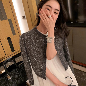 2025春时尚套装 Super美银箔纱秘鲁珠片套装女针织开衫裙子两件套