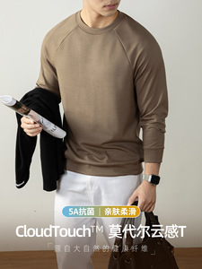 【都市休闲风】260G莫代尔云感棉长袖T恤男亲肤卫衣插肩袖打底衫