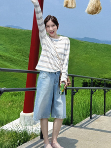 韩系chic别致条纹防晒长袖T恤女夏季设计感小众外搭薄款罩衫上衣