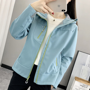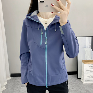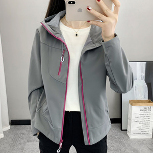 山系户外防风防水软壳衣三防女式连帽登山徒步工装冲锋衣连帽外套