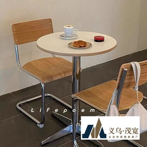 中古餐桌ins伊姆斯圆桌方桌网红餐桌铝合金脚实木多层桌面洽谈桌