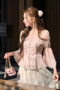 NMIOK 粉色重工上衣白色蕾丝半身裙国风套装早秋新款气质漂亮女装
