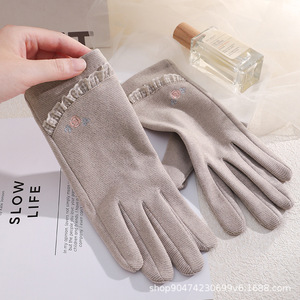 秋冬手套女薄绒高弹新款冬季可触屏保暖防寒骑车防风针织女士开车