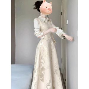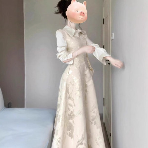 法式复古收腰显瘦长裙气质温柔风连衣裙+打底衬衫套装