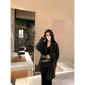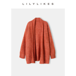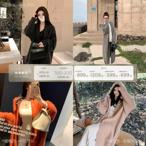 【暖橘色-中长开衫】阿拉善羊绒白绒+真丝.. 预定8个工作日