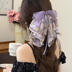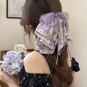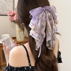 仙女风紫色碎花蝴蝶结马尾夹2025显发量后脑抓夹中式高贵典雅发夹