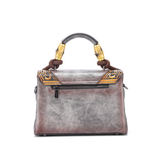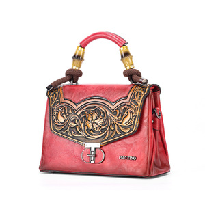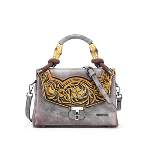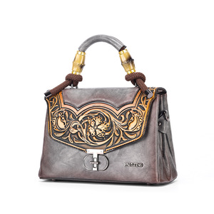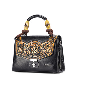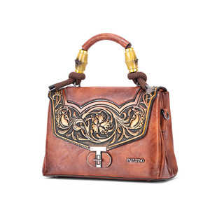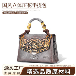 跨境直供国风复古女士手提包小拎包真皮质感雕花马鞍包单肩斜挎包