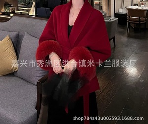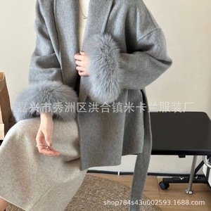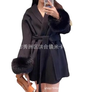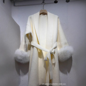 韩国绒新款环保毛袖时尚气质百搭中长款秋冬女厚皮草外套针织开衫