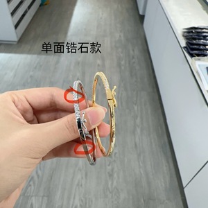 跨境欧美单排单面经典锆石手镯简约大气中东迪拜爆款卡扣手镯批发
