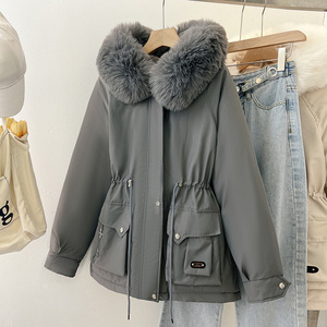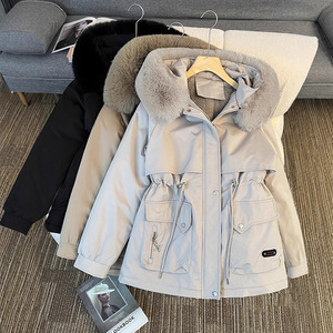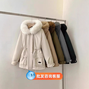 派克服女2024款收腰显瘦连帽大毛领加厚收腰时尚韩版秋冬外套保暖