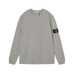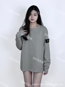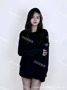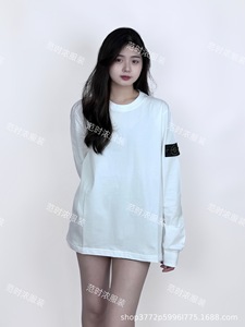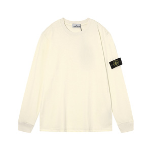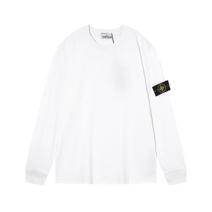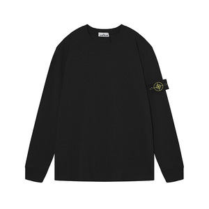 跨境STONEE石头岛纯色罗盘袖标圆领长T长袖休闲宽松简约百搭打底