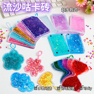 新款透明流沙咕卡砖创意手工DIY流沙咕卡盘钥匙扣手账装饰咕卡片