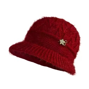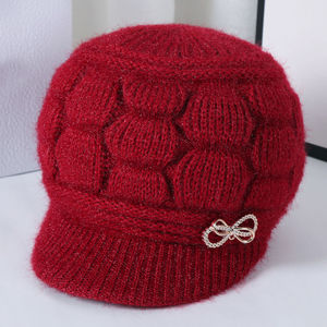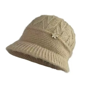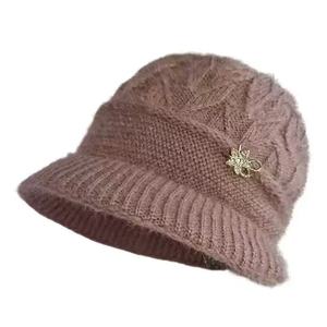 中老年帽子秋冬季加绒保暖盆帽中老年奶奶针织棉帽老太太毛线帽