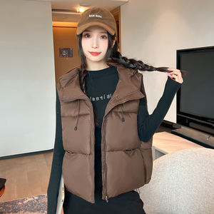 羽绒棉马甲女短款连帽新款2025宽松百搭高级感小个子背心坎肩外套