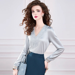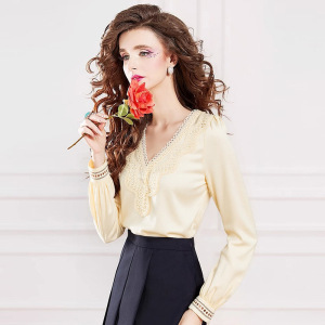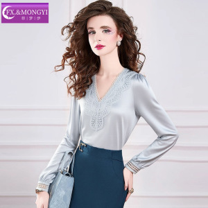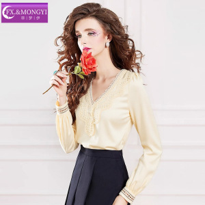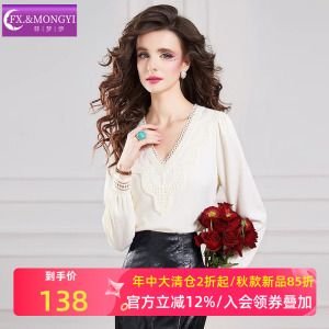 菲梦伊蕾丝边衬衫女长袖秋装新款设计感小众时尚减龄气质V领上衣
