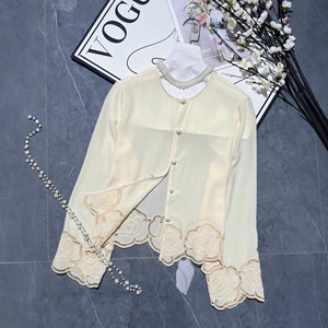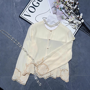 批发2025早秋款轻奢法式刺绣玫瑰真丝长袖衬衣洋气优雅衬衫不退换