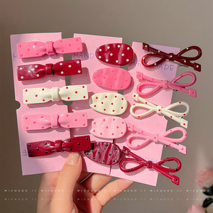 甜美波点蝴蝶结椭圆小发夹可爱侧边夹刘海夹鸭嘴夹发卡发饰卡子女