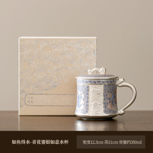 如鱼得水-青花鎏银如意水杯(礼盒装)