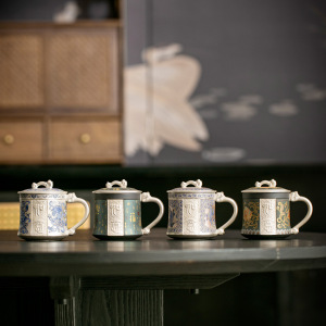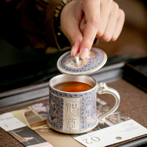 陶瓷如意鎏银水杯个人专用中式轻奢高档功夫茶具复古雅致喝茶杯