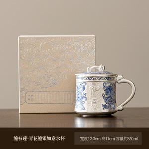 缠枝莲-青花鎏银如意水杯(礼盒装)