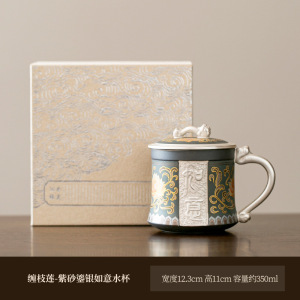 缠枝莲-紫砂鎏银如意水杯(礼盒装)