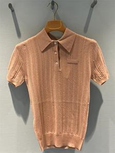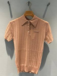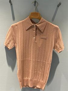 重工款式气质女装领polo短袖新款绞花徽标女嵌花字母镂空针织衫25