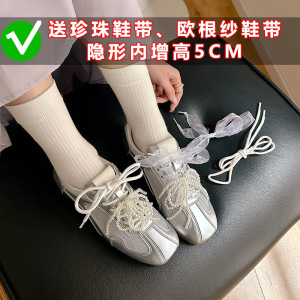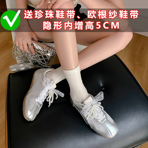 内增高百搭复古真皮蕾丝珍珠芭蕾鞋2025秋季新款运动休闲德训鞋女