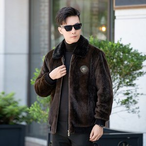 冬季新款金雕绒外套男翻领仿貂皮大衣皮毛修身一体海宁皮草潮