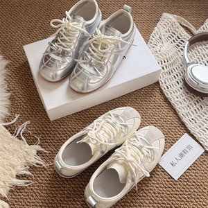羊皮版~银色复古德训鞋女2025秋新款百搭轻便软底休闲运动阿甘鞋