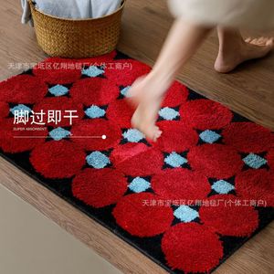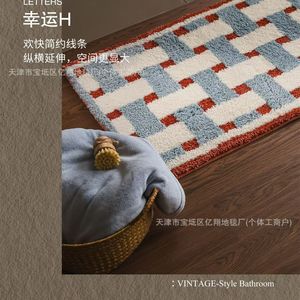 简约复古格子多巴胺撞色浴室地垫防滑吸水脚感柔软脚垫植绒仿羊绒