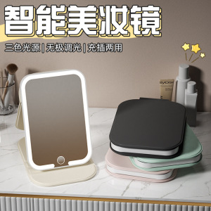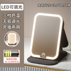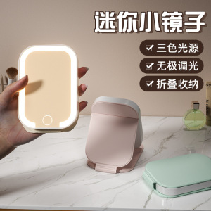 桌面镜子化妆镜带灯折叠翻盖led便携大号小号卧室学生宿舍办公室